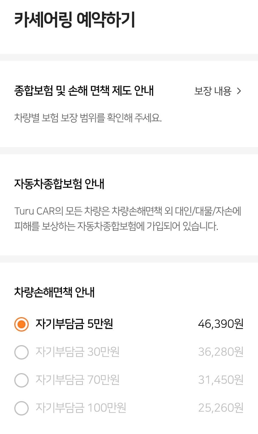 - 대여요금은 예약시 선결제되며, 주행요금은 반납 후 자동 결제됩니다.