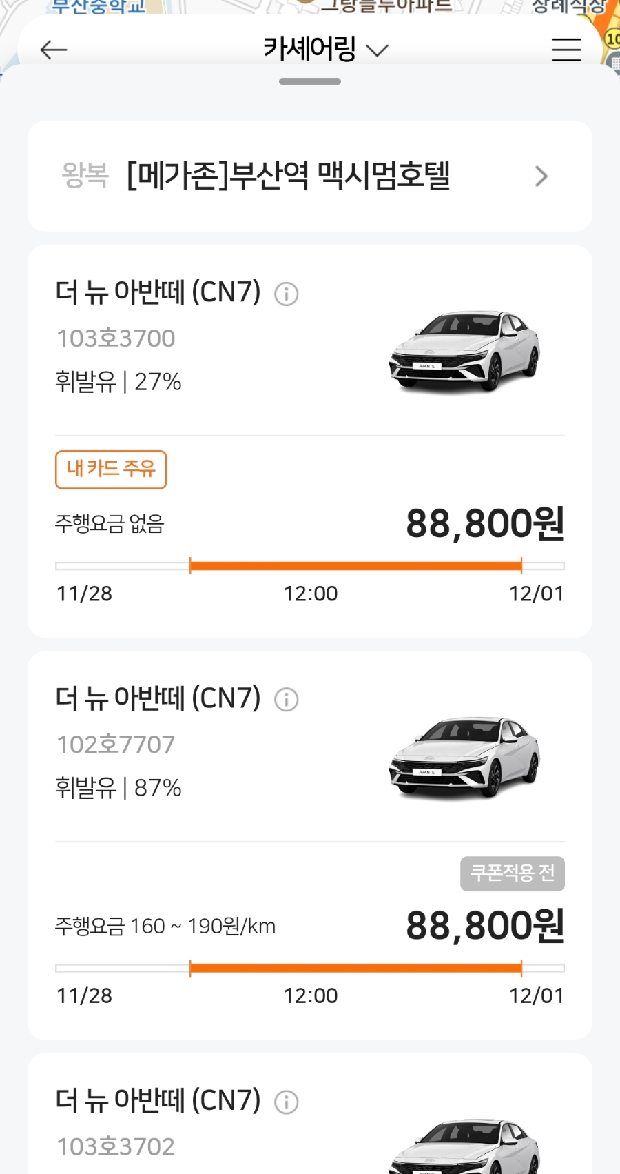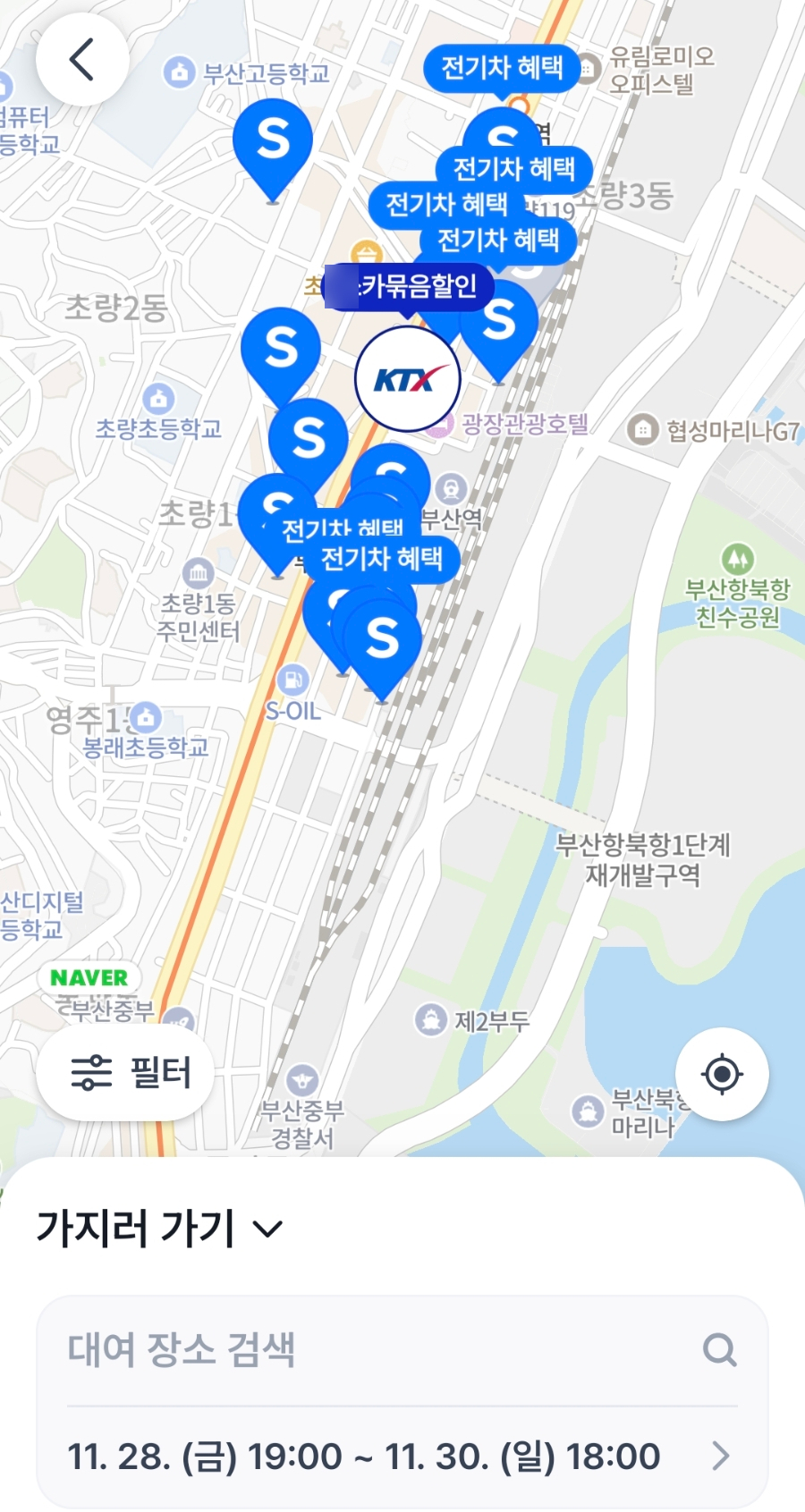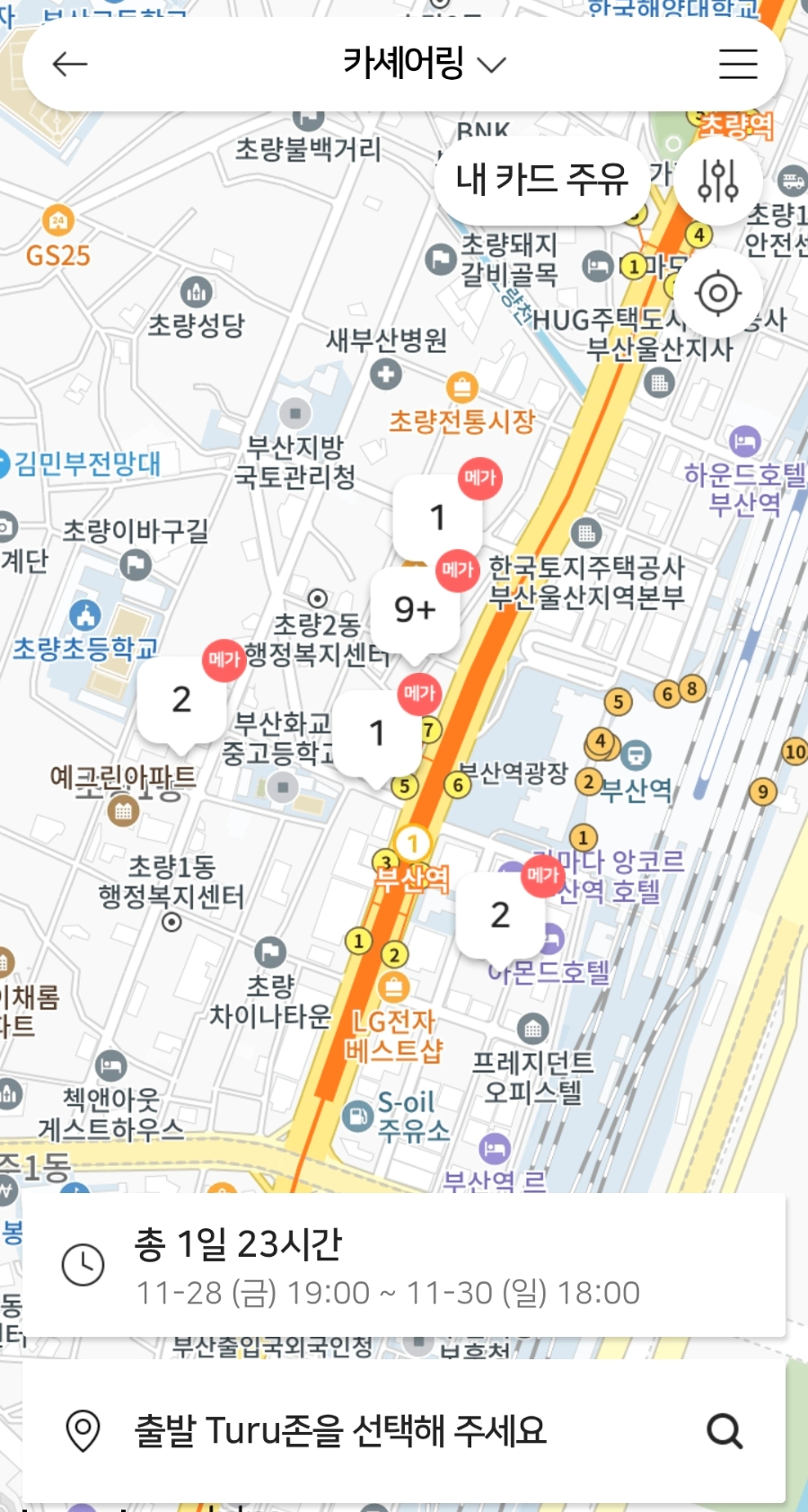 - 투루카 어플에서 부산역 투루존을 선택해 원하는 차종과 대여일정을 예약하면 됩니다.