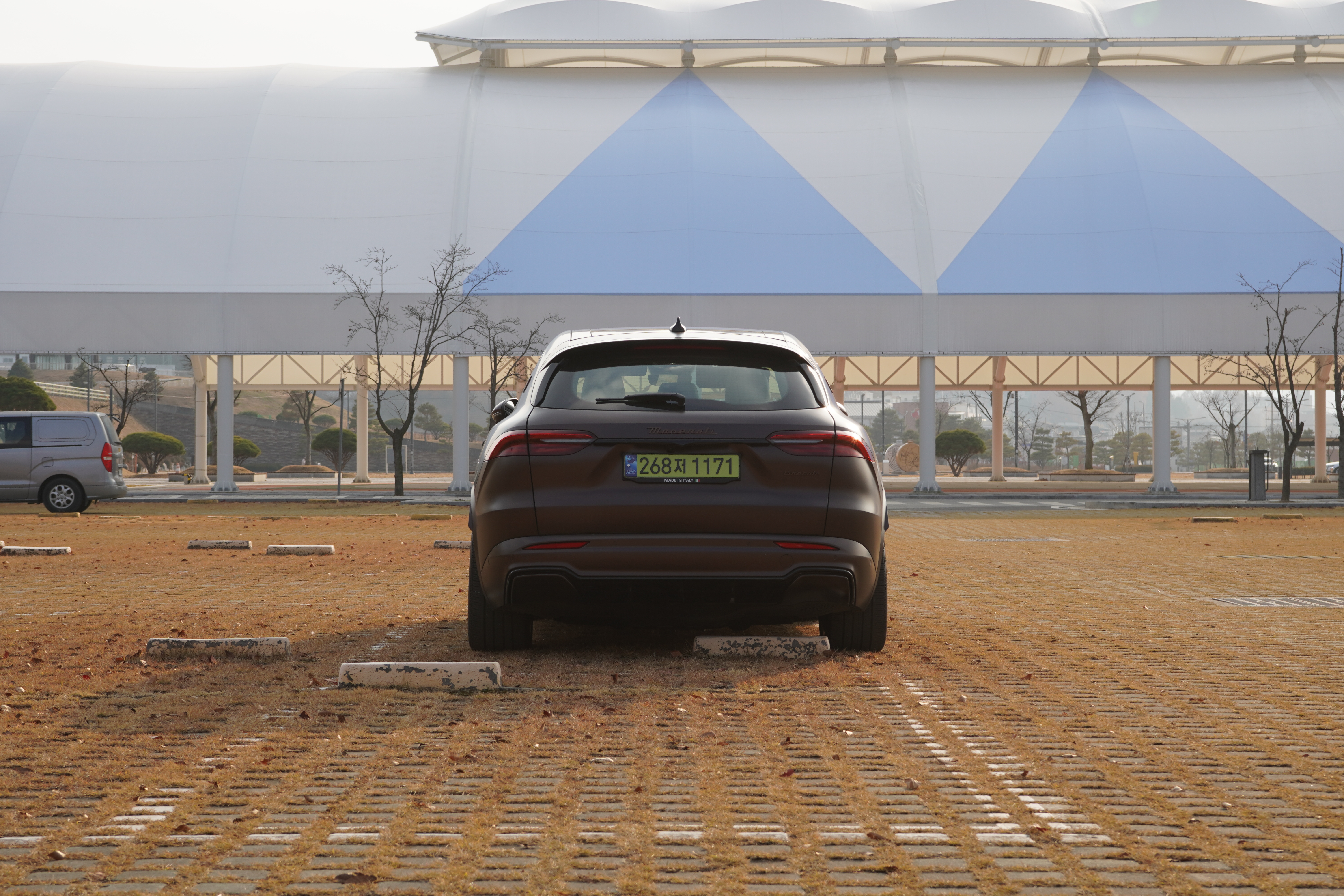 측면 실루엣은 SUV임에도 전고가 낮고 차체가 단단해 보이며, 후륜에는 295mm 광폭 타이어가 적용돼 시각적으로도 안정감이 강하게 느껴집니다. 시승차에 적용된 브론조 오파코 무광 컬러는 푸오리세리에 코르세 컬렉션에 해당하는 색상으로, 고급스러움과 스포츠 감성을 동시에 강조합니다.