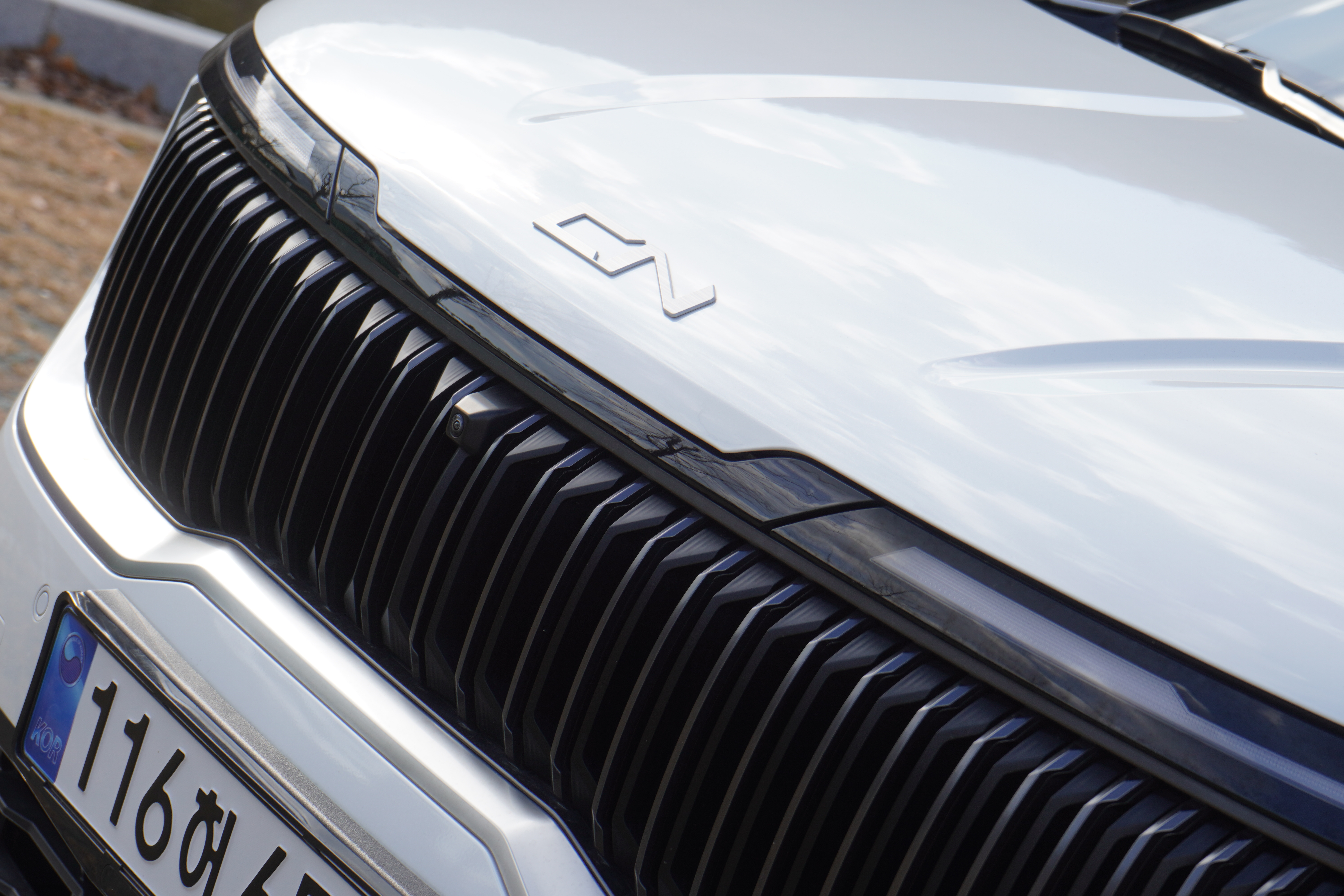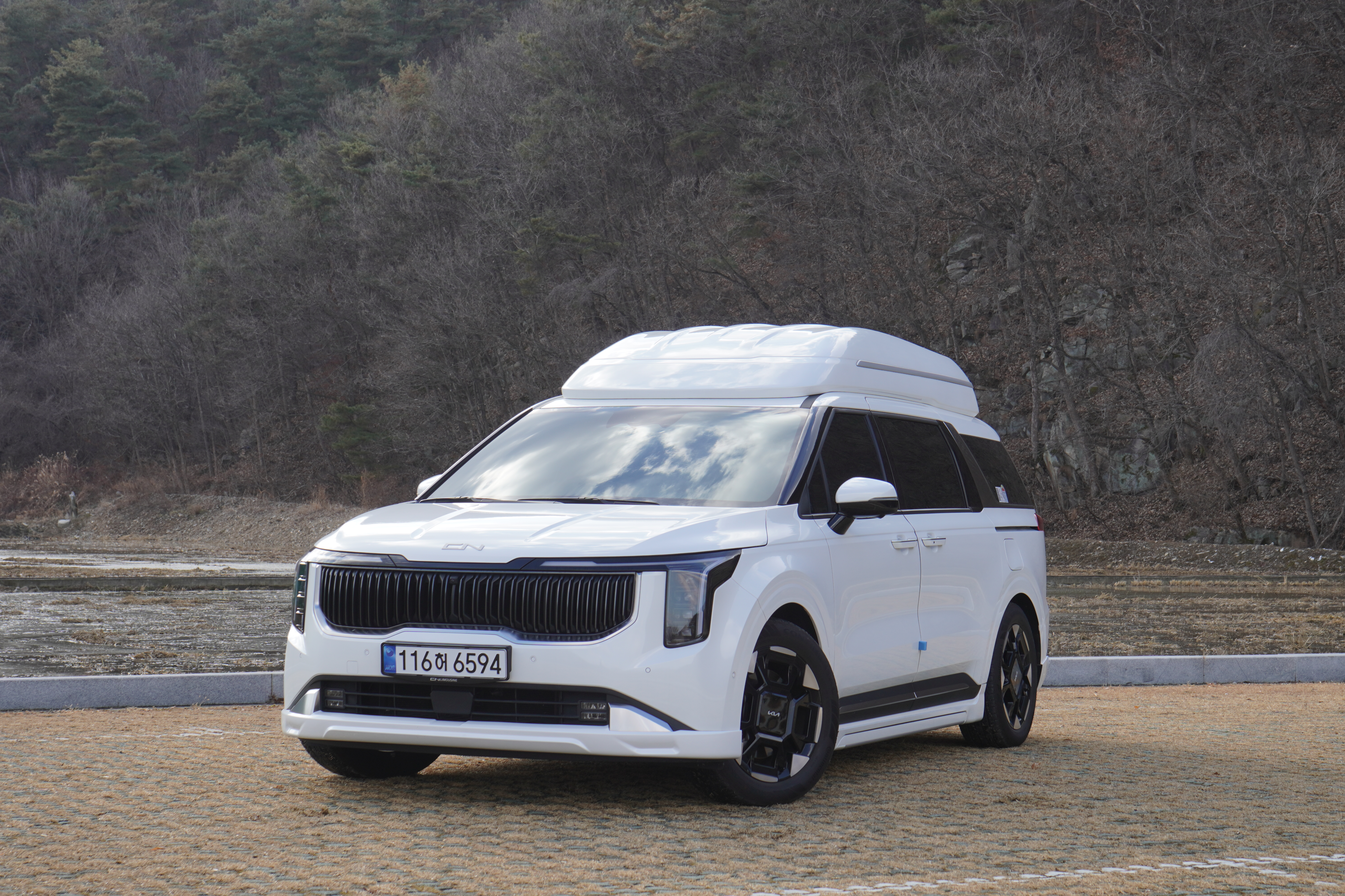 가장 눈에 띄는 변화는 CN 전용 버티칼 라디에이터 그릴입니다. 순정의 밋밋한 패턴 대신 무광 세로줄 패턴이 적용되어 차량이 훨씬 웅장하고 깔끔해 보입니다. 여기에 기아 로고 대신 적용된 CN 전용 엠블럼은 순정 디자인을 해치지 않으면서도 세련된 느낌을 줍니다.