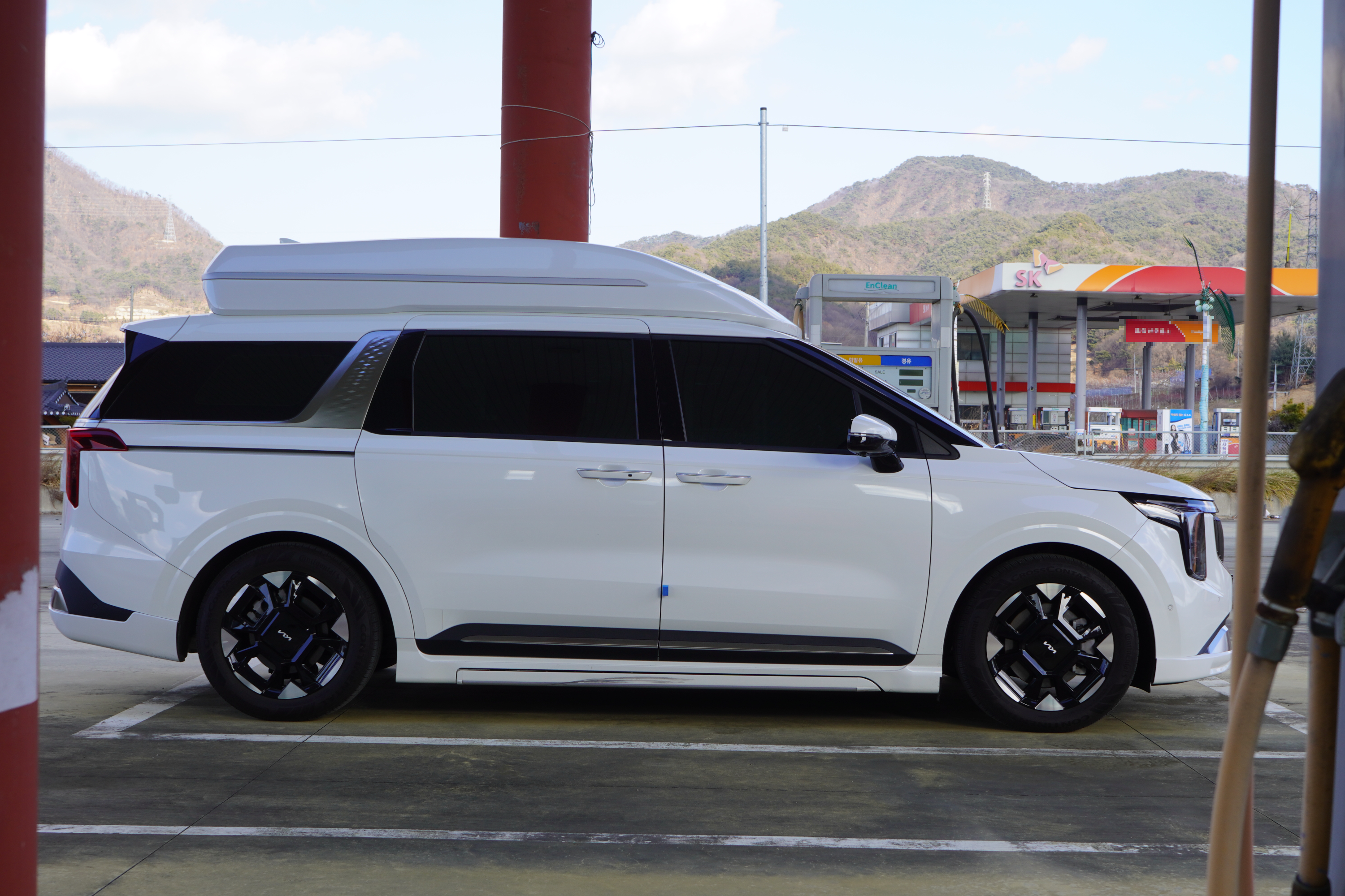 하이리무진의 생명인 루프 디자인 또한 인상적입니다. CN모터스는 직접 하이루프 작업을 진행하는데, 전고가 높아졌음에도 비율이 붕 뜨지 않습니다. 기본 옵션인 에어댐과 사이드 스커트 바디킷이 무게중심을 시각적으로 낮춰주어 안정적인 자세를 연출합니다.