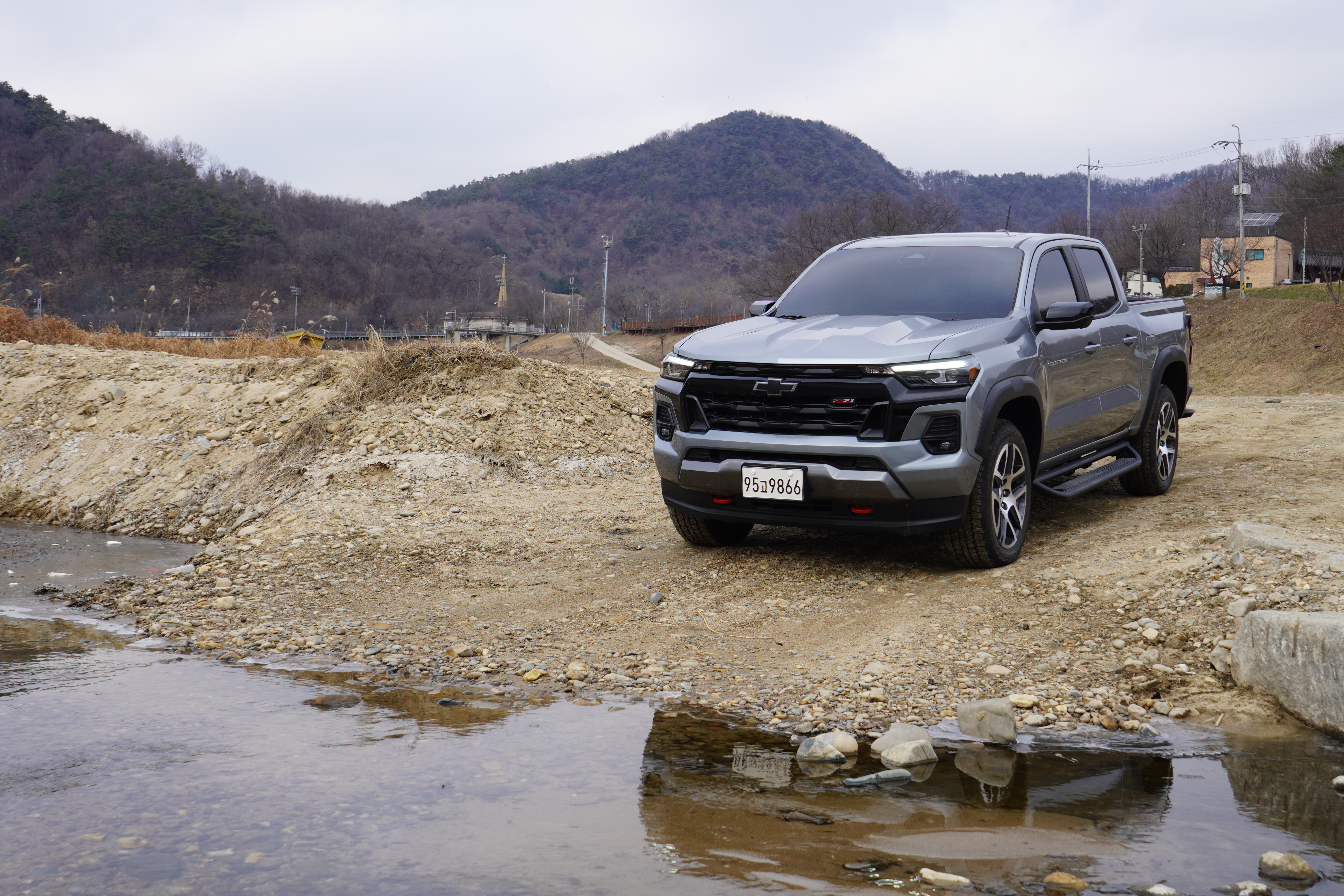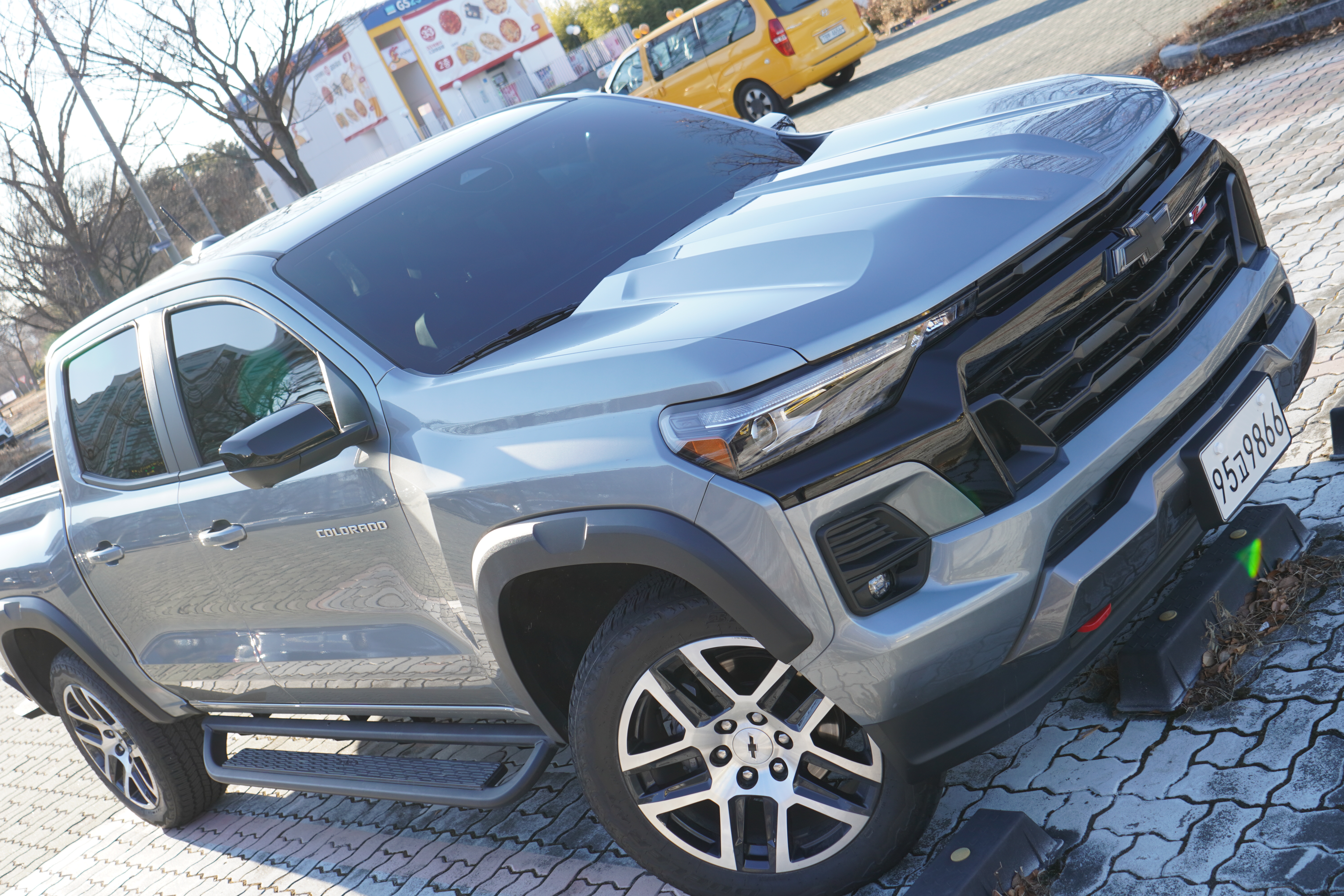 가장 놀라운 점은 승차감입니다. 프레임 바디에 판스프링 조합이라 승차감이 딱딱할 것이라 예상했지만, 콜로라도는 요철을 굉장히 부드럽게 처리합니다. 충격이 날카롭게 들어오지 않고 둥글게 깎여서 들어오는 느낌이라, 방지턱을 넘을 때도 불안함이 없습니다.