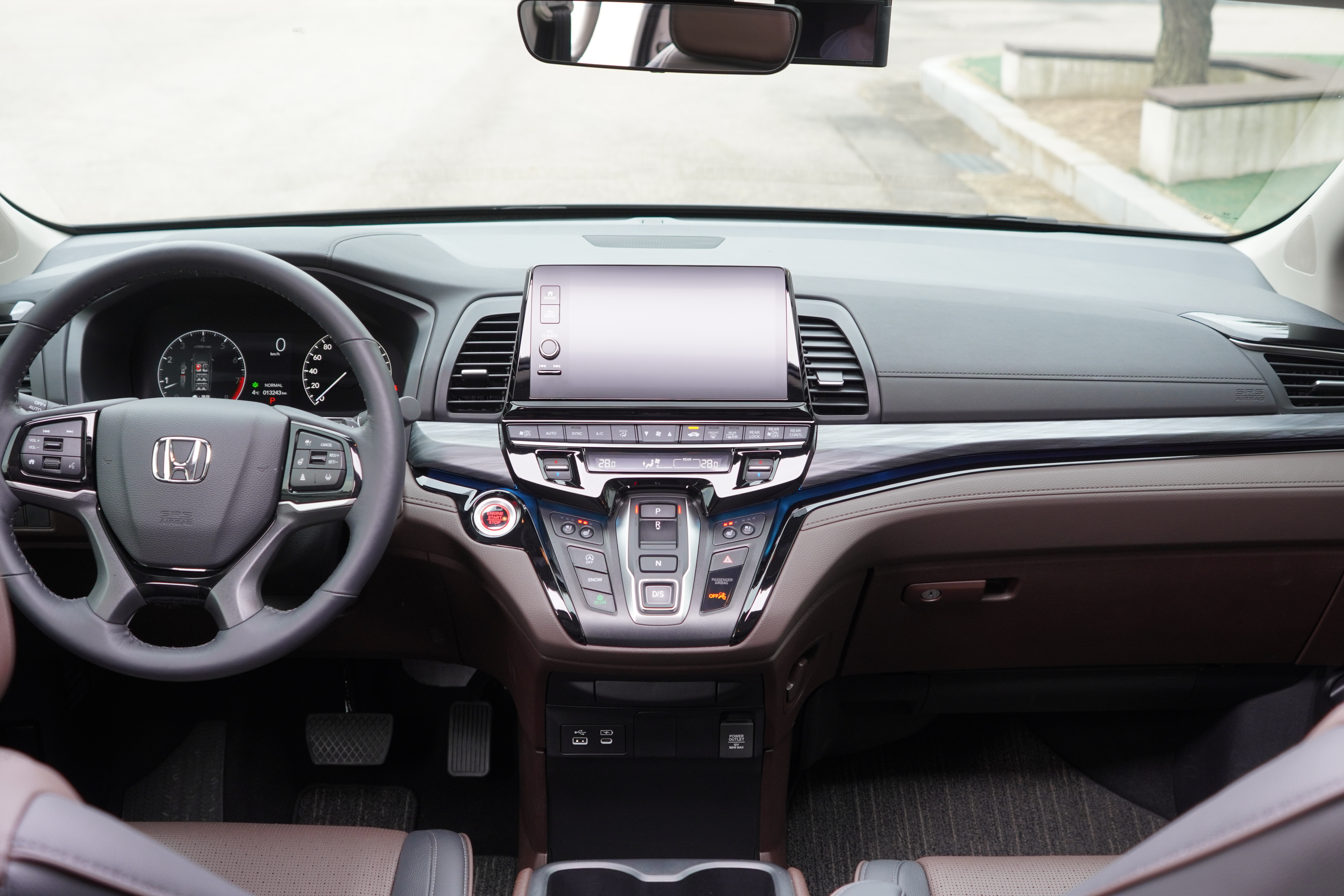 [1열 공간: 버튼 하나에도 이유가 있다] 운전석에 앉으면 가장 먼저 눈에 띄는 것은 센터페시아의 버튼들입니다. 요즘 차들이 터치스크린으로 모든 것을 통합하는 추세지만, 오딧세이는 직관적인 물리 버튼을 고수합니다.
