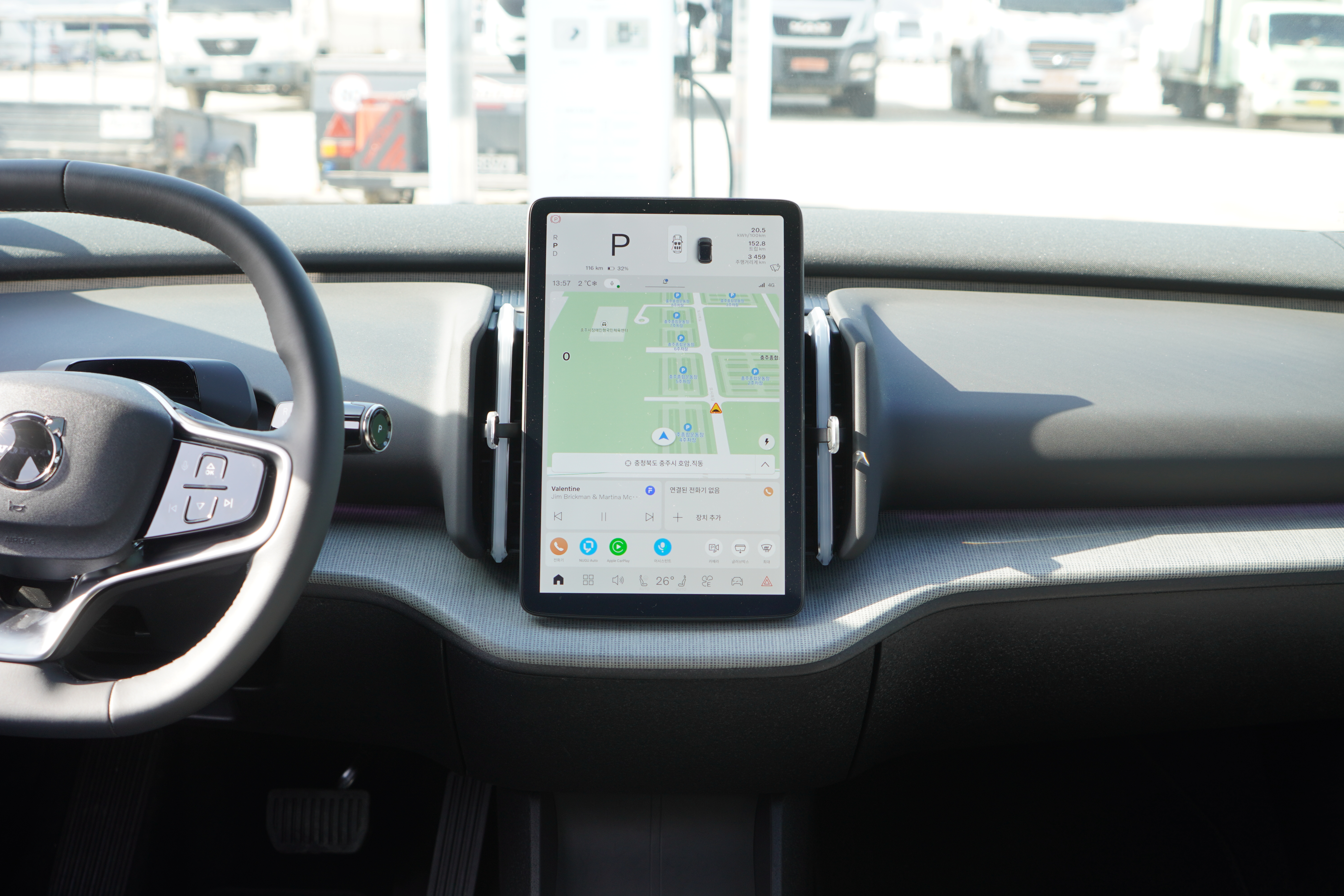 먼저 서울 반포에서 충주까지 고속도로 정속 주행 시, 흐름에 맞춰 시원하게 주행했을 때 약 5.46km/kWh를 기록했습니다. 공인 연비를 훌쩍 뛰어넘는 수치입니다. 반면 기온이 낮아 히터를 틀고 정체가 심한 시내 구간에서는 약 3.0~4.9km/kWh 수준을 보였습니다. 역시 전기차에게 겨울철 시내 주행은 가혹한 조건입니다.