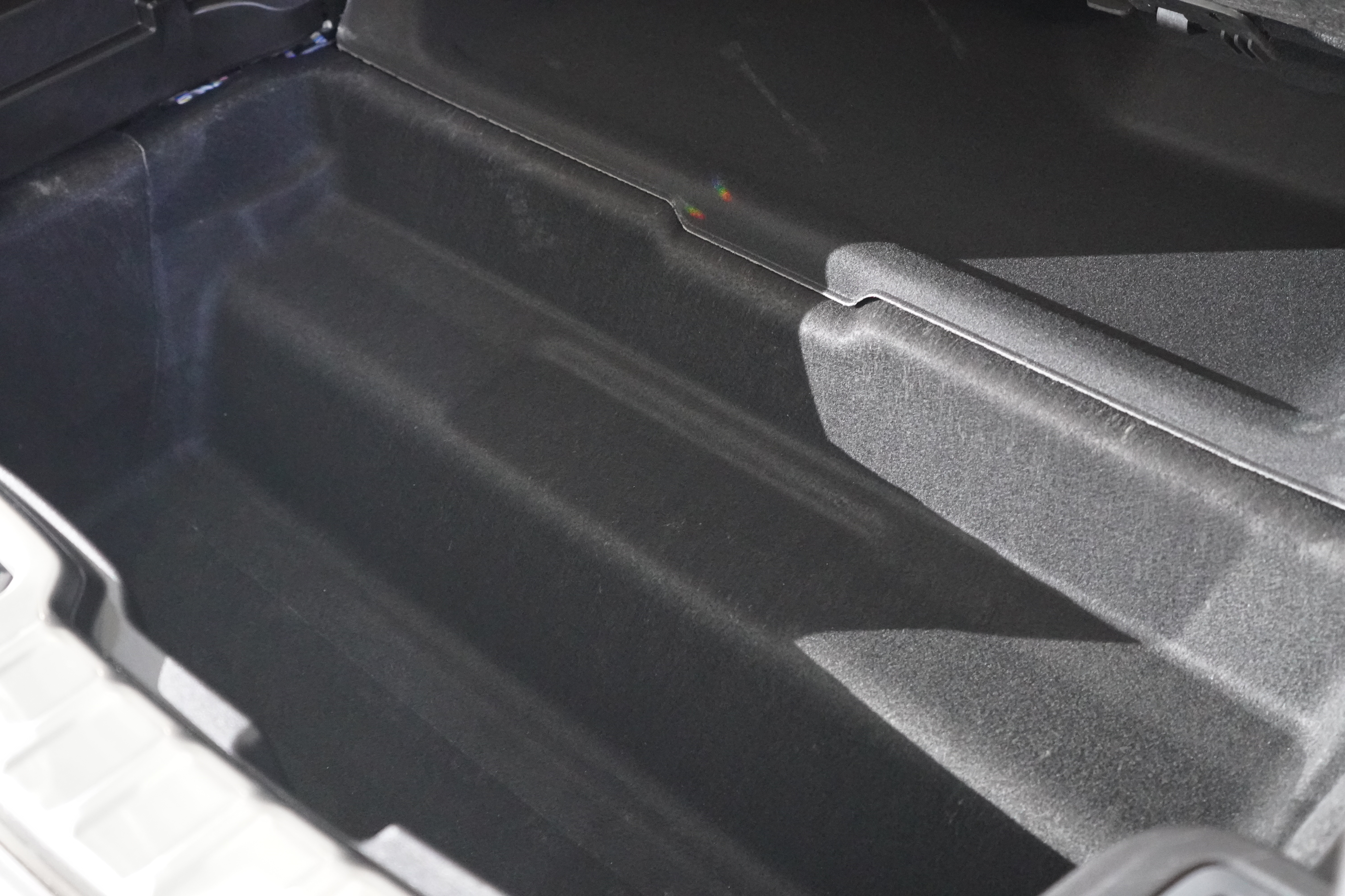 앞쪽 보닛을 열면 나오는 32리터짜리 프렁크 공간도 물건입니다. 보통 내연기관 뼈대를 개조한 차에서 사륜구동 모델을 고르면 앞쪽에 거대한 모터가 들어가면서 이 프렁크 공간이 확 줄어들거나 아예 플라스틱 덮개로 꽉 막혀버리잖아요. 그런데 이 차는 뼈대부터 제대로 설계하면서 앞쪽 모터를 차체 바닥 아주 깊숙한 곳으로 밀어 넣어버렸습니다. 그래서 후륜구동 모델이든 사륜구동 모델이든 이 32리터짜리 프렁크 크기가 단 1리터의 손해 없이 완벽하게 똑같습니다. 테두리에 웨더스트립 방수 마감도 아주 꼼꼼하게 되어 있어서 세차 용품이나 충전 케이블을 싣고 다니기에 딱 좋습니다.